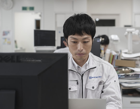 茨城大学の工学部を卒業し、2011年4月に新卒で入社しました。リクルート系のサイトから、工学部で学んだ知識を活かし、設計のできる会社として新熱工業に応募。見学の際には、清潔な環境で驚きました。仕事も面白そうで、雰囲気も良いため、「この会社に就職したい」と強く感じましたね。入社してからは12年ほど設計の部署で働き、2年前に営業の業務に異動。より深く技術的な話ができる営業職を目指し、お客様対応を行なっています。