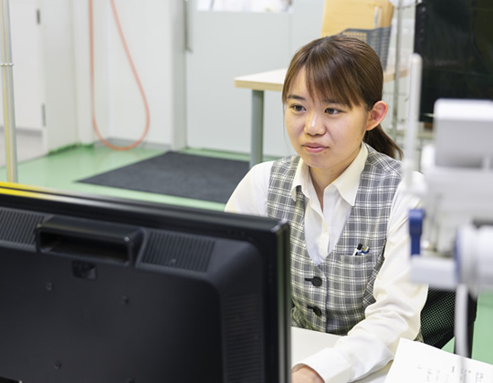 私は主に出荷を担当しています。梱包していただいた製品を、お客様ごとに配送の手配をする業務です。心がけているのは正確さ。間違いがいちばん駄目ですから、そうならないよう細心の注意を払っています。製品製造のための指示書をつくる作業もしていますので、仕入れ先様との関わりだとか、納期の調整、価格交渉などがやりがい。上手に展開できた瞬間に、嬉しさを感じます。