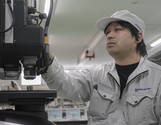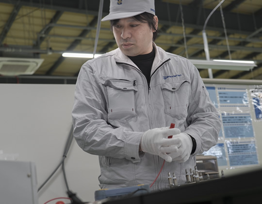 品質保証課で行なう仕事は製品の出荷検査になります。加えて、購入した部材等の受け入れ検査。いわゆる一般的な検査業務ですね。私が主とする業務は、どちらかと言えばクレーム対応に則したものになります。製品に不良が発生した際の原因調査。その原因は社内にある場合もありますし、お客様の利用方法や環境に起因するケースもあります。真の原因を的確に探り、解決する役割です。経験年数は長いので、問題が生じた段階で、要因やどの状況で起きたことなのかを、ある程度は推測できます。そこを深堀りして、お客様や自社の仲間へ明確に伝える。どう言えば伝わりやすいか。そこは強く意識して話しています。