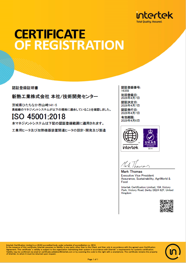 この度、新熱工業 株式会社は、国際標準規格である労働安全衛生マネジメントシステム
