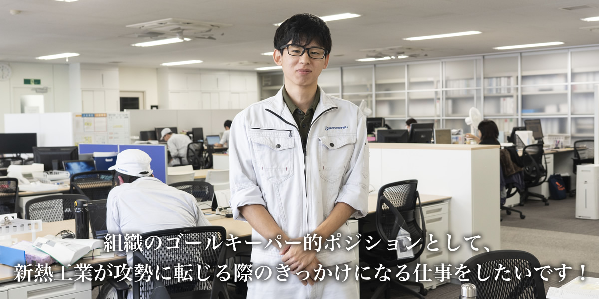 自分で考え、自ら発信できる積極的な方が向いている気がします。新熱工業という会社自体が少量多品種で新しいことにチャレンジし続けている組織です。前向きでアクティブに行動できる方に、ぜひ応募していただきたいと思います。