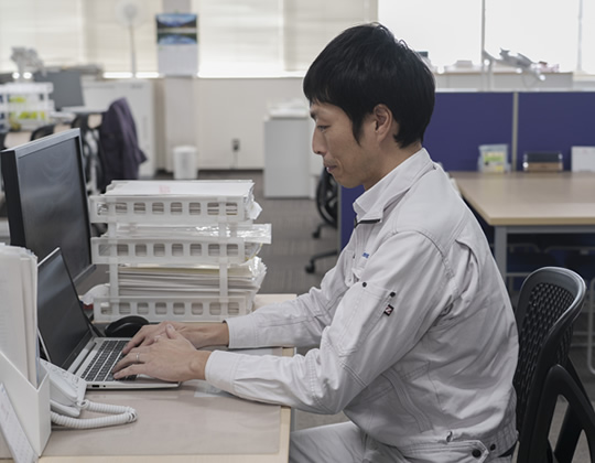 お問い合わせも含めた引き合いがお客様からあり、その対応が基本的な業務となります。お客様の求める内容をしっかりヒアリングして、どんなヒーター製品がいいかを探り、お客様に提案。見積りを出し、やりとりを重ね、注文に結びつけるのがメインの仕事になります。お客様とのやりとり内容を設計部の方と共有するのですが、私自身が設計部出身ということもあり、話の通りは非常に早いです。意思の疎通が齟齬なくしっかりできるのは大きな利点だと思います。