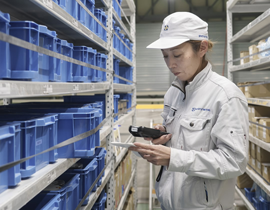 私は主に出荷を担当しています。梱包していただいた製品を、お客様ごとに配送の手配をする業務です。心がけているのは正確さ。間違いがいちばん駄目ですから、そうならないよう細心の注意を払っています。製品製造のための指示書をつくる作業もしていますので、仕入れ先様との関わりだとか、納期の調整、価格交渉などがやりがい。上手に展開できた瞬間に、嬉しさを感じます。